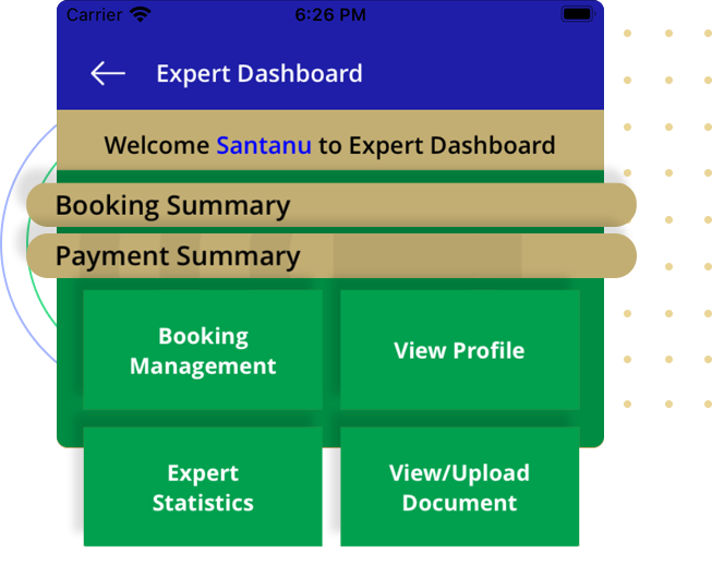 Our Experts enjoy a complete personalized dashboard with historical data and insights on Booking and Payment - also much more!
